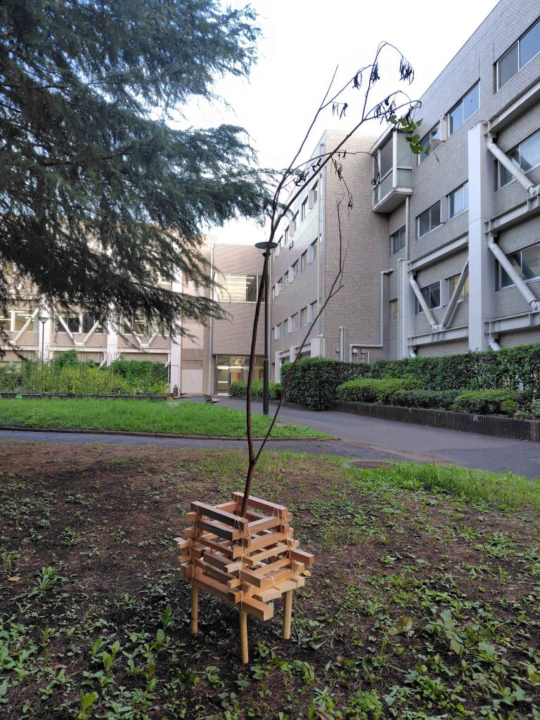 イヌコリヤナギのカムイを大学キャンパスに迎え入れ、ヘペレセッ(子熊のおり)[1]に似せた花壇で育てる活動を行なった。最終的にイヌコリヤナギに大量に土産を持たせて手にかけることで、その魂の再訪を願う祭事を行う予定であった。しかし、夏場の酷暑や迎え入れたイヌコリヤナギの生活環境の急激な変化、夏休み期間における世話の頻度の低下によって、9 月までに完全に枯れてしまったため実施することができなかった。この経験はイヌコリヤナギのために時間をつくるケアの精神が欠如していたことを痛感させた。