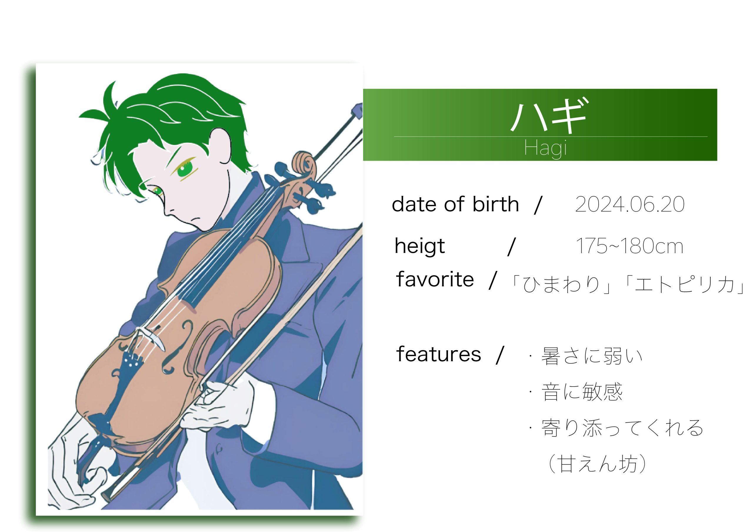 さらにマイハギとの距離を縮めるため、マイハギに名前をつけることにした。私の家には二つのマイハギがあり、それぞれの性格や好みに基づいて名前を決め、擬人化してみた(図1、図2)。この行為によって、単なる植物としてではなく、「家族」や「友人」のように接する感覚が芽生え、マイハギとの関係性に変化ができた。