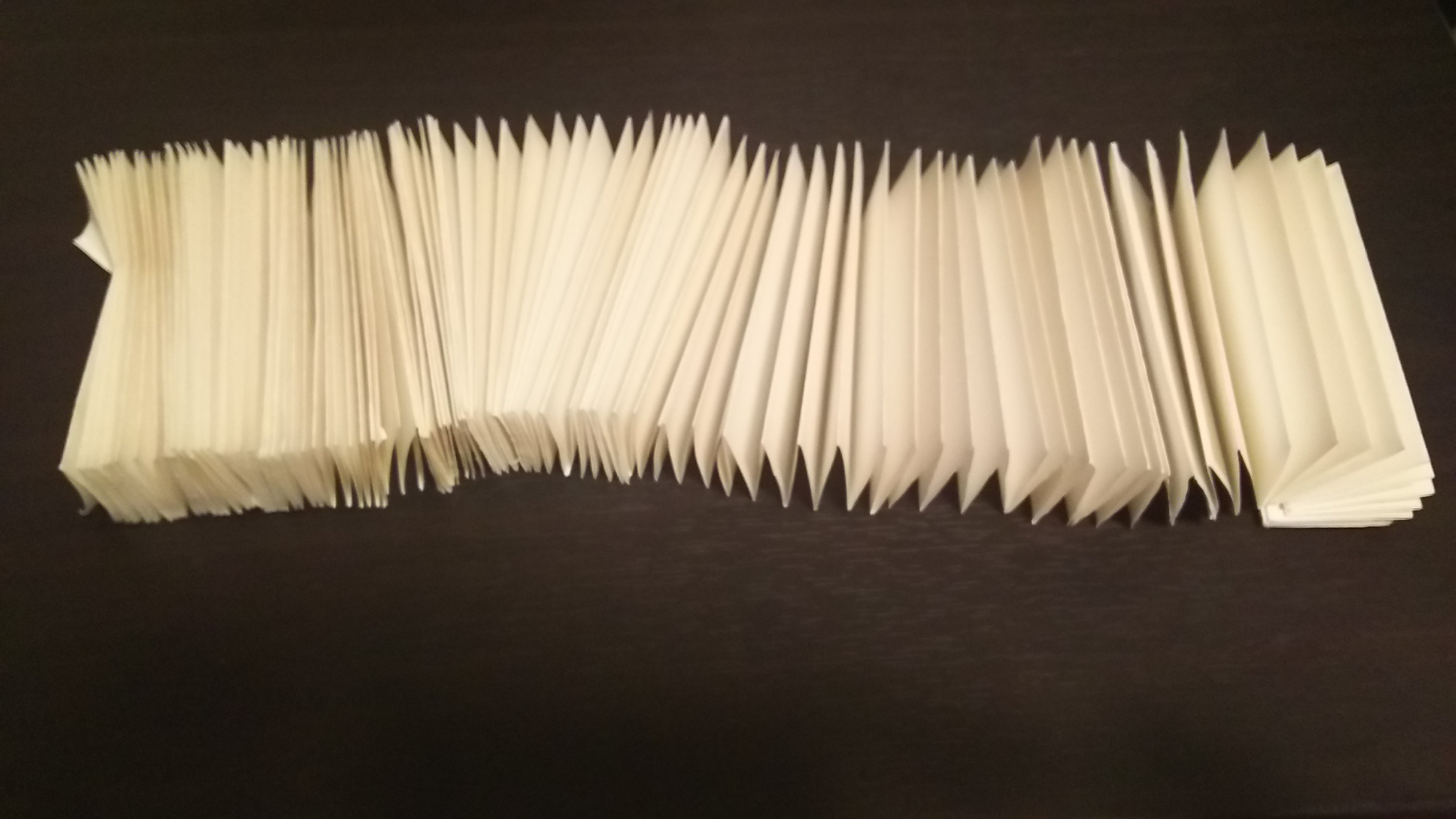 一つの山折を1年とし、この先約80年分がどれくらいの長さになるのかを表した立体物。