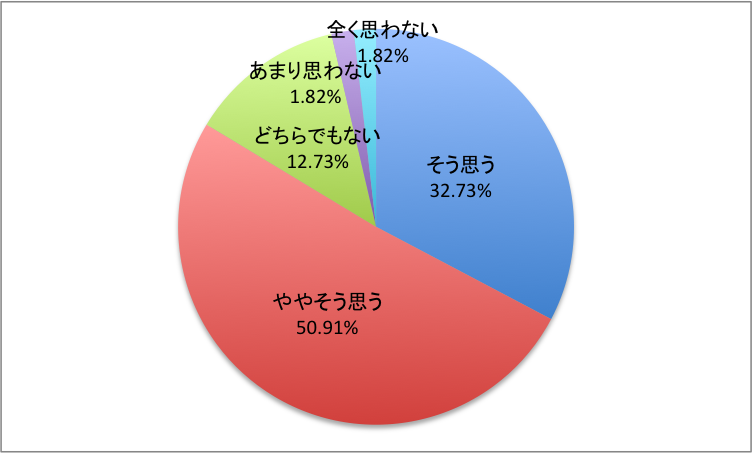 自分で立体を組み立ててみることで、図形だけを見るのとは違う感覚を得られたかどうかアンケートを行ったところ、図2のように得られたと答える人が多かった。
