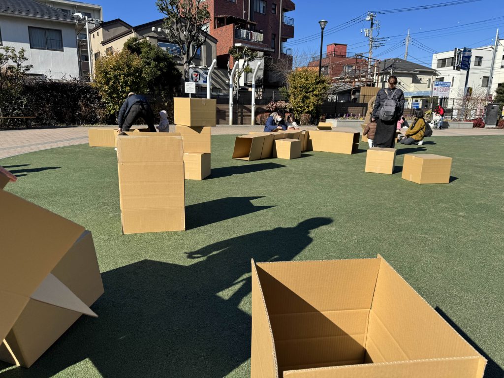 本研究では、リサーチの結果、ダンボールを椅子のように活用する様子が観察された。この観察を参考に、ノンデザイナーでも簡単に空間を生み出せるよう、「スツールのようなもの」をプロトタイプとして制作した。ただし、本研究の成果物としては、椅子以外の形態も検討可能であるため、必ずしも椅子に限定されるわけではない。
