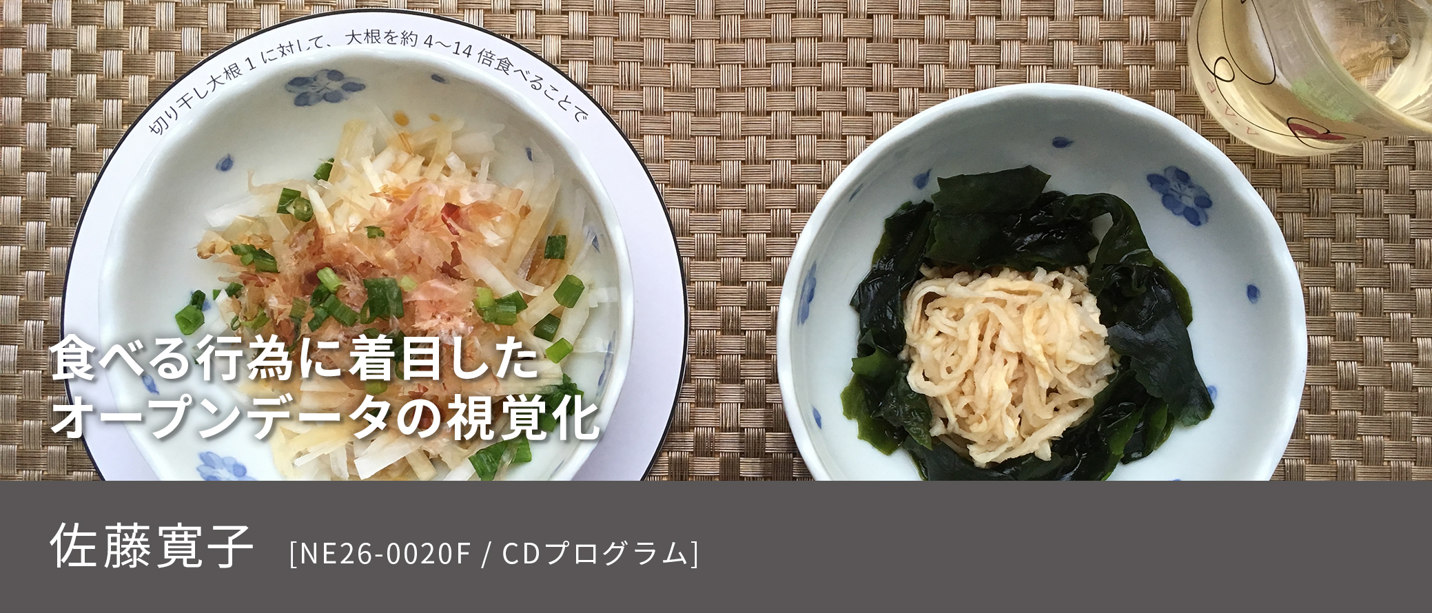 食べ物に関連するニュースやデータを収集してグラフ化された食事を制作する。また、ニュースの内容や制作した過程を自身のブログ[2]の【食べられるグラフ】という企画で全12回更新、公開[3]した。
