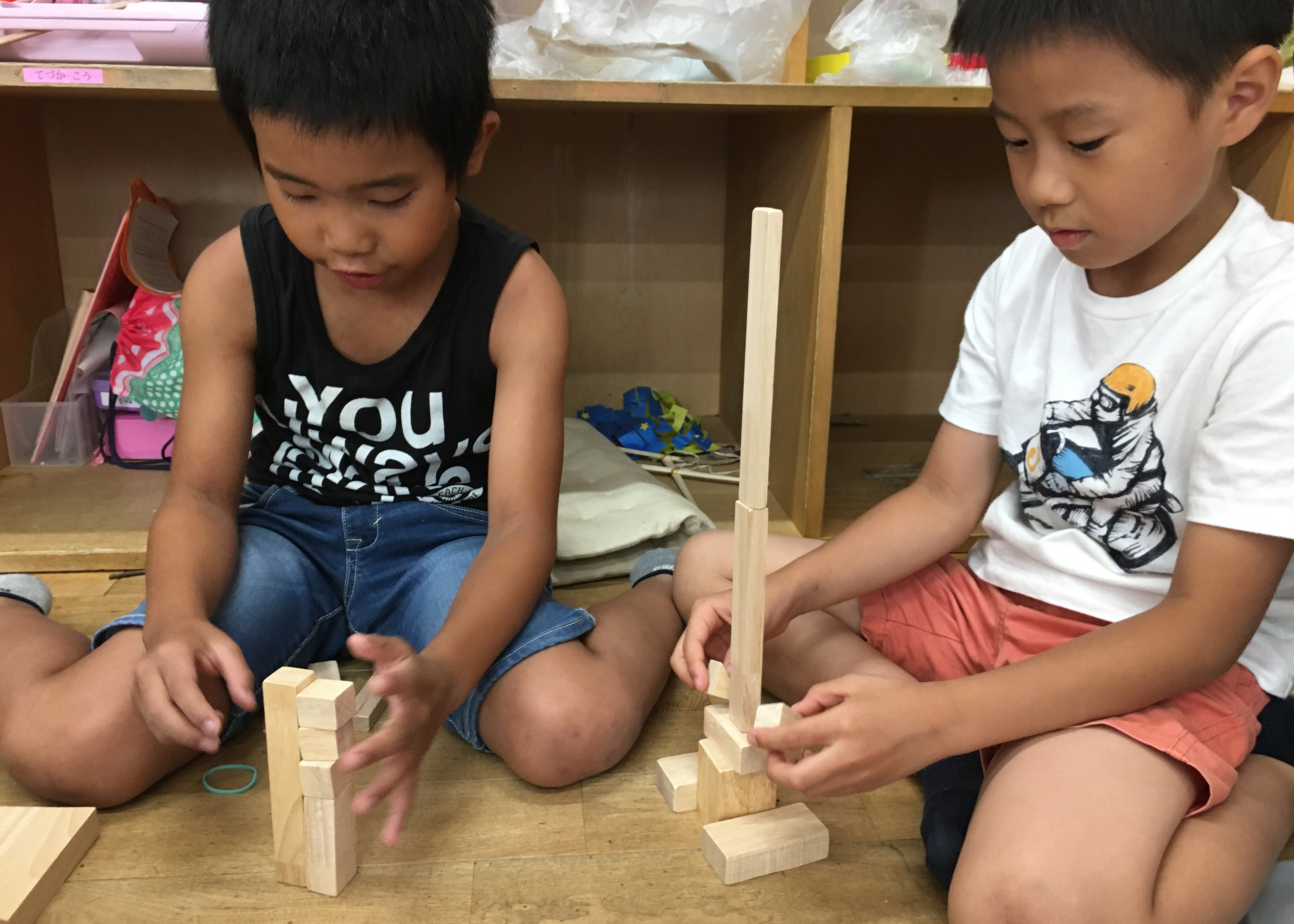 一方で筆者が入手した廃材は、いびつで色も形も不揃いながら、「なんでもないからこそ、さまざまなものをつくれる」ものであった。既製品にはない「生の素材の余地」が、子どもの好奇心を強く刺激し新たな発想を展開させているように見えた。積み木においては、造形の完成度が高ければ高いほど純粋な創造性が発揮されづらいため、素材の中にある余地が重要であると考えた。