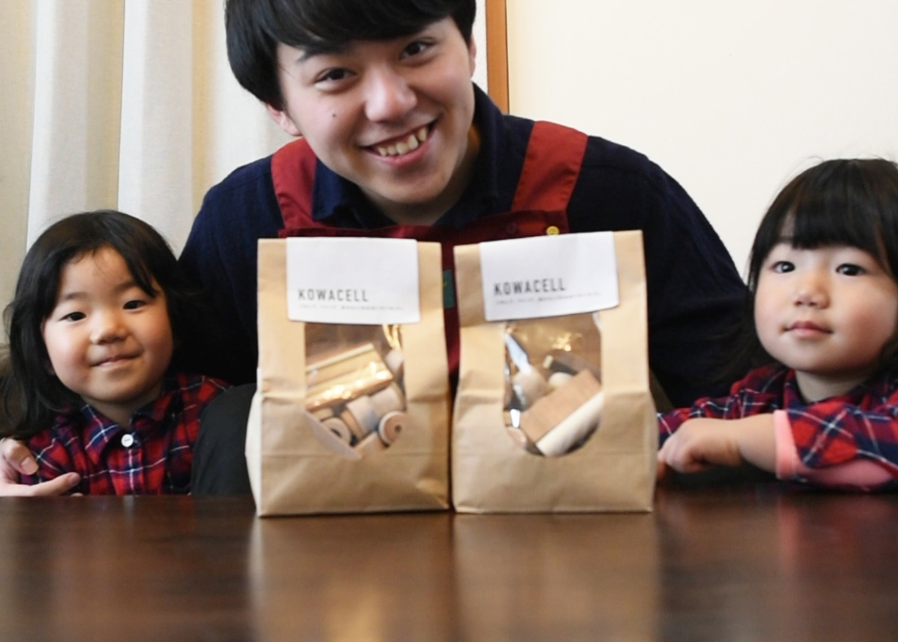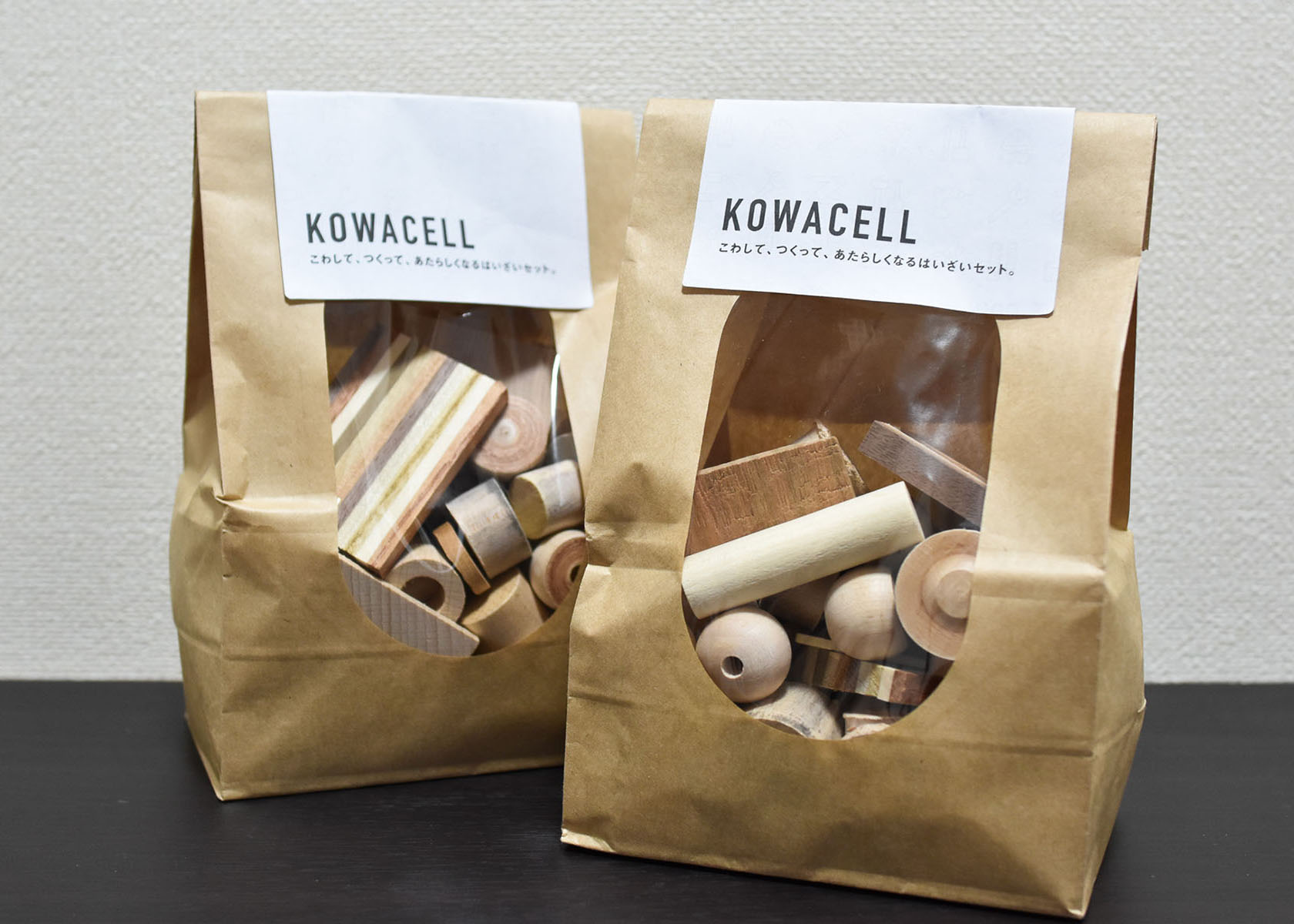 ひとつは、破壊的廃材工作セットの「KOWACELL」である。なかに入っているのは全て、職人の試行錯誤の過程で生まれた廃材のパーツであり、これらを壊しながら作り変えることで、廃材を価値のあるものへと変身させる体験ができるようになっている。